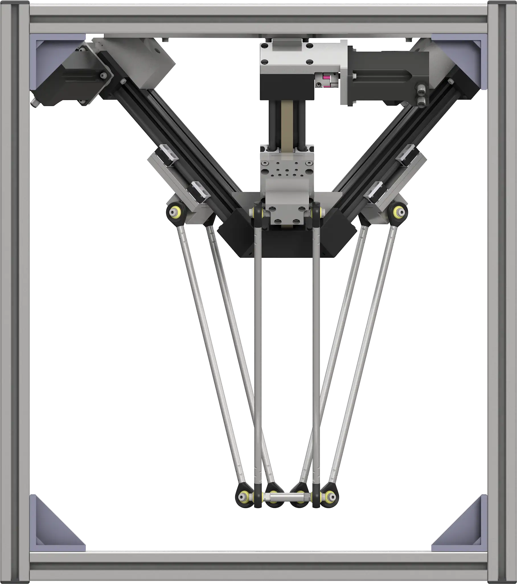 Pre-assembled robot in transport rack made of construction profiles, without motors