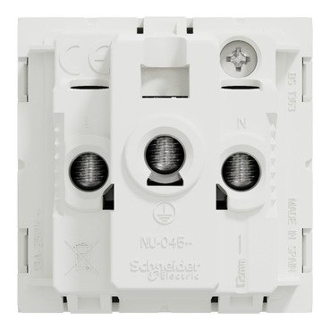 Schneider Electric New Unica socket-outlet NU304518 is a mechanism in color white. The outlet pole configuration of this socket-outlet is 2P + E with shutters, ensuring safety protection. This device respects the British standard.