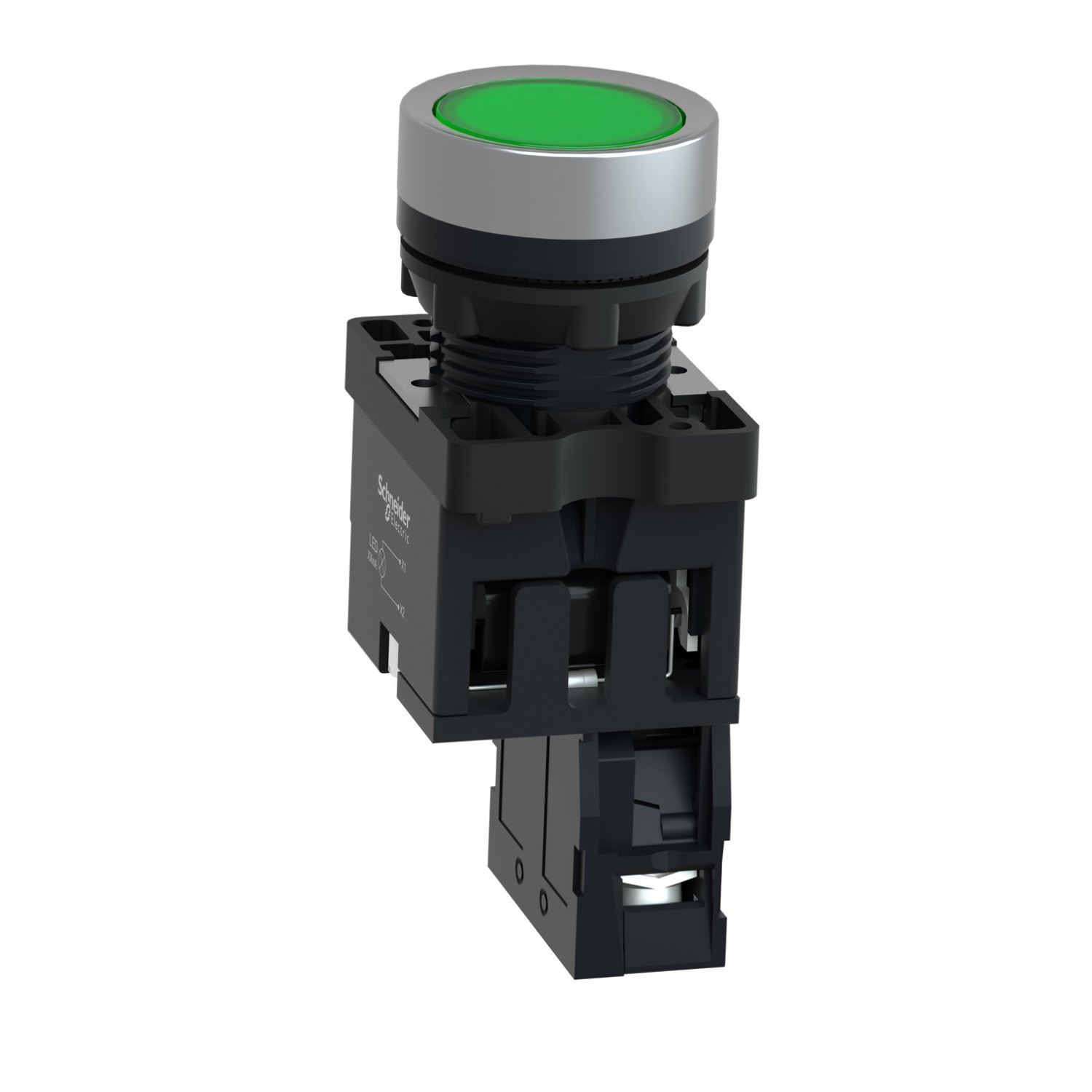 Schneider XA2EW33M1 | Green Flush Complete Illum Push-Button – Ø22 – Flush – 220V AC – 1NO Description
