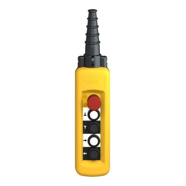 Schneider XACA4913 | Pendant control station, plastic, yellow, 4 push buttons, 1 emergency stop