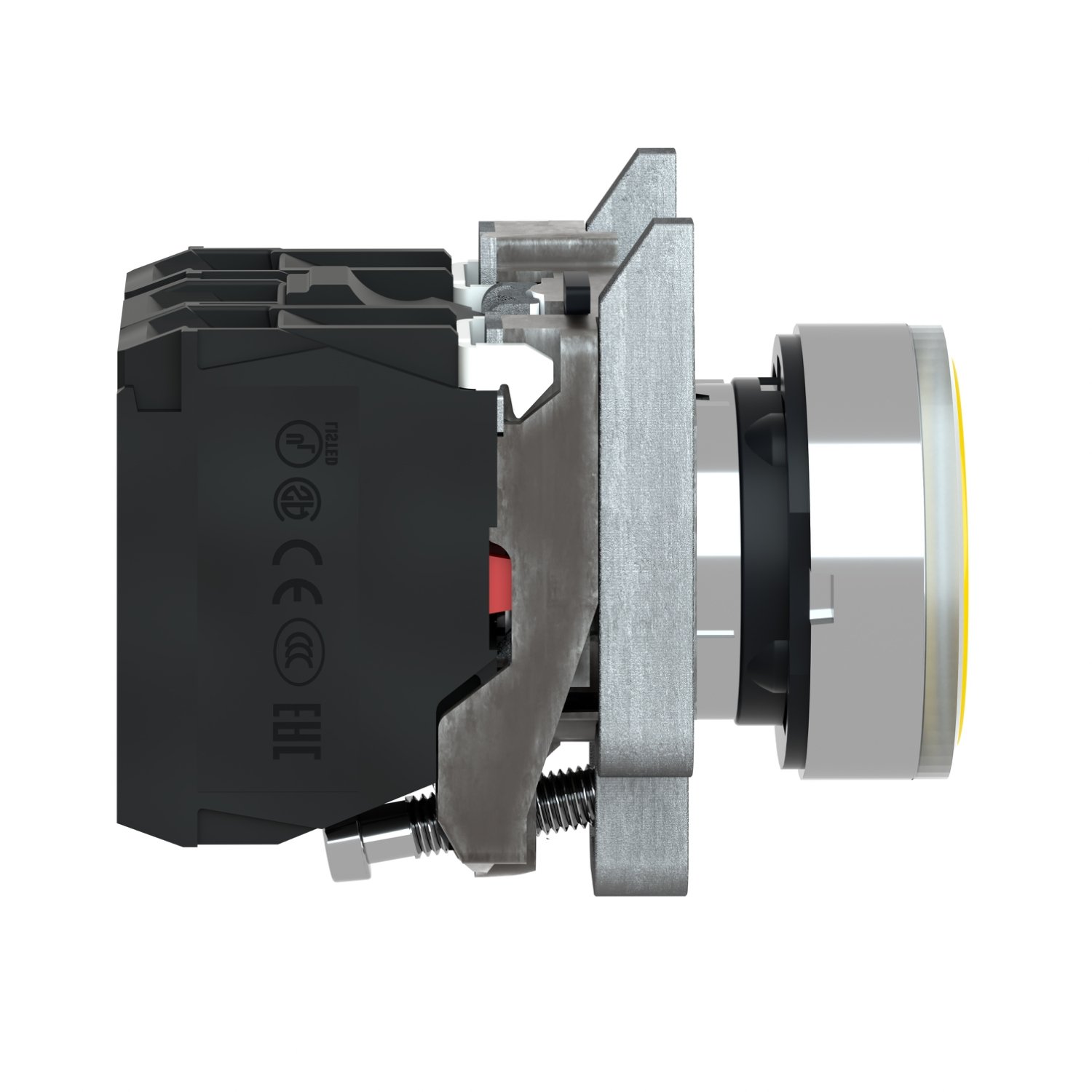 Schneider XB4BW3565 | Illuminated push button, metal, flush, orange, Ø22, spring return, <= 250 V, 1 NO + 1 NC